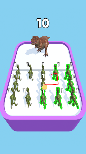 Merge Master – Dinosaur Fusion contains many levels with increasing difficulty. You will face a greater challenge until the next level. The only way to win is to defeat the enemies. Only 1% of players can unlock all the creatures, so come and challenge yourself.