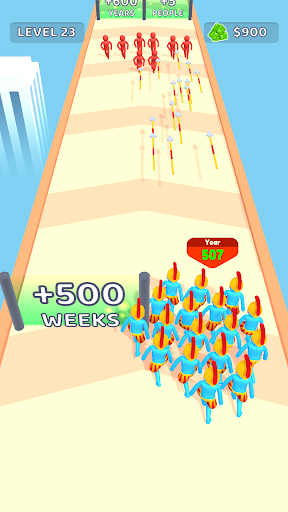 Conflicts are inevitable in human history. There’re enemies coming at your crowd as well. Kill as many as you can, and keep your crowd safe with weapons.
